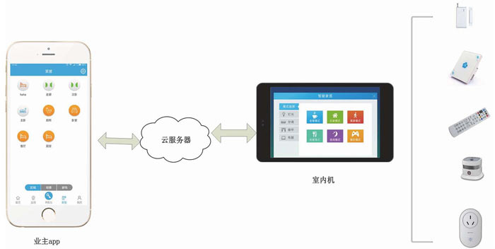 1.業(yè)主app控制開關(guān),點(diǎn)擊開關(guān)后,會(huì)通過(guò)云服務(wù)器通知給室內(nèi)機(jī),最后室內(nèi)機(jī)通過(guò)zigbee協(xié)議去控制一些可控開關(guān)。