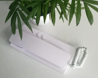 樓宇對講室內分機AJL-813采用ABS塑料材質,表面做了磨砂處理。手柄式非可視分機,可實現對講通話、一鍵開鎖、兩線接入、不分極性,非常方便安裝使用。