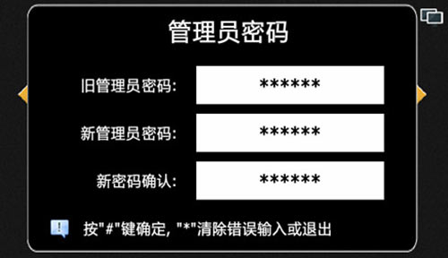 1) 管理人員可根據舊密碼修改為新的管理員密碼,輸入正確的舊密碼(6位)和兩次相同的新密碼(6位),即可設置新的管理員密碼,便于管理。如圖4.3.1: