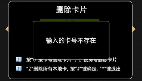 按“2”+“#”選擇刪除所有本地發出的卡片,提示確認要刪除本地發出的所有卡片,按“#”鍵確認刪除,按“*”鍵返回上一步,如圖4.12.8: