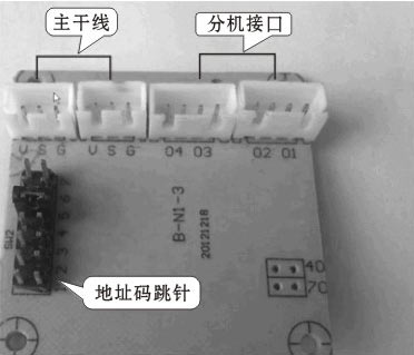 樓層和戶數符合標準,可直接通過設置解碼器地址碼跳針(1. 2.3.4、5. 6. 7插針)來設置房號,解碼器板子如下圖所示:
