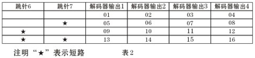 注:該表是樓層號的設置,打“★”表示該跳針短路(短路即是插針帽兩針插上)兩層共用一個解碼器的房間號編碼表如下表4所示: