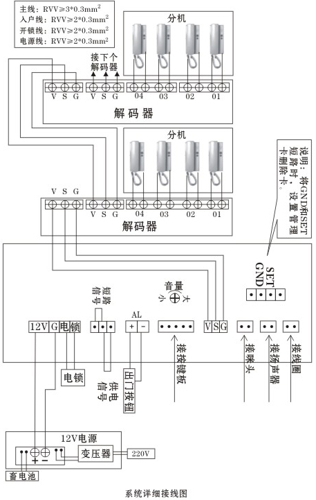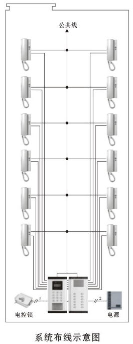 1. 系統采用總線制布線,必須增加解碼器,主干線為三芯線,入戶線為兩芯線無極性區分,布線簡單、施工方便;