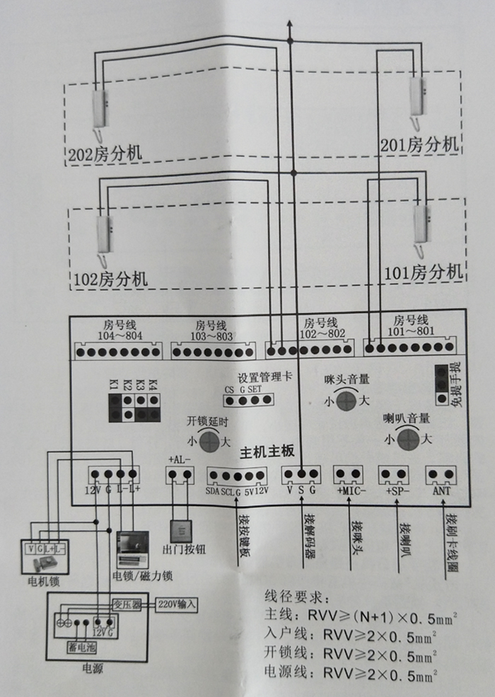 3 )系統(tǒng)接好線即可使用,主機(jī)和分機(jī)無須編碼;